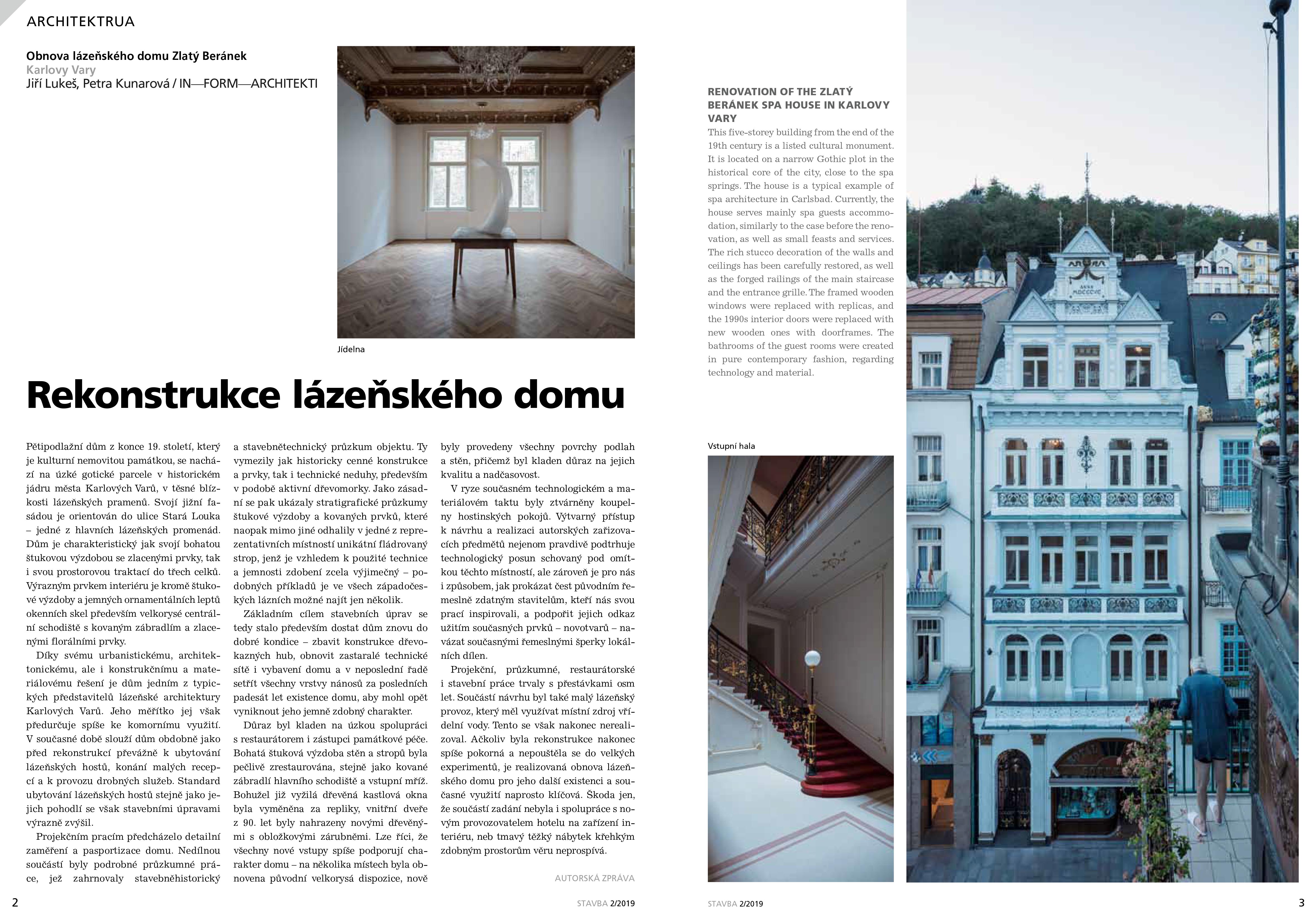 O našem projektu rekonstrukce památkově chráněného domu na kolonádě v Karlových Varech psaly časopisy